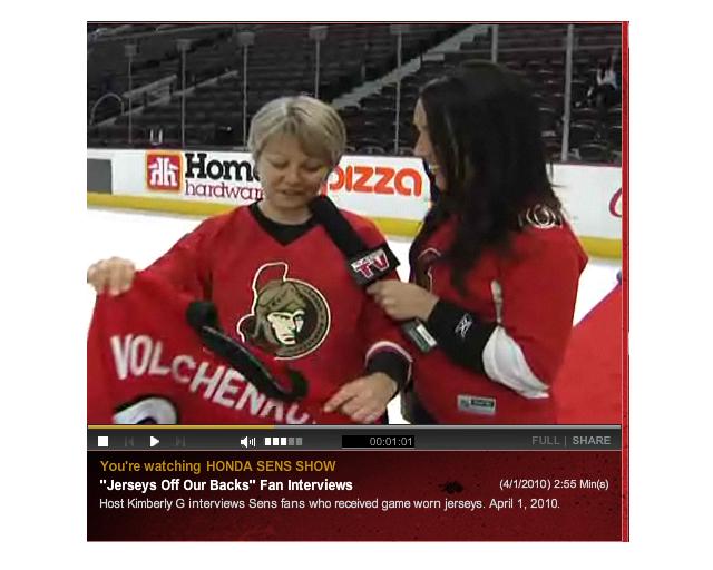 Sens Fan Describes Her Love For Anton Volchenkov and Her Game Used Volchy Jersey Posted on April 2, 2010 “Jerseys Off Our Backs” Fan InterviewsSens TV Online April 1, 2010 To View Video Please Visit This link